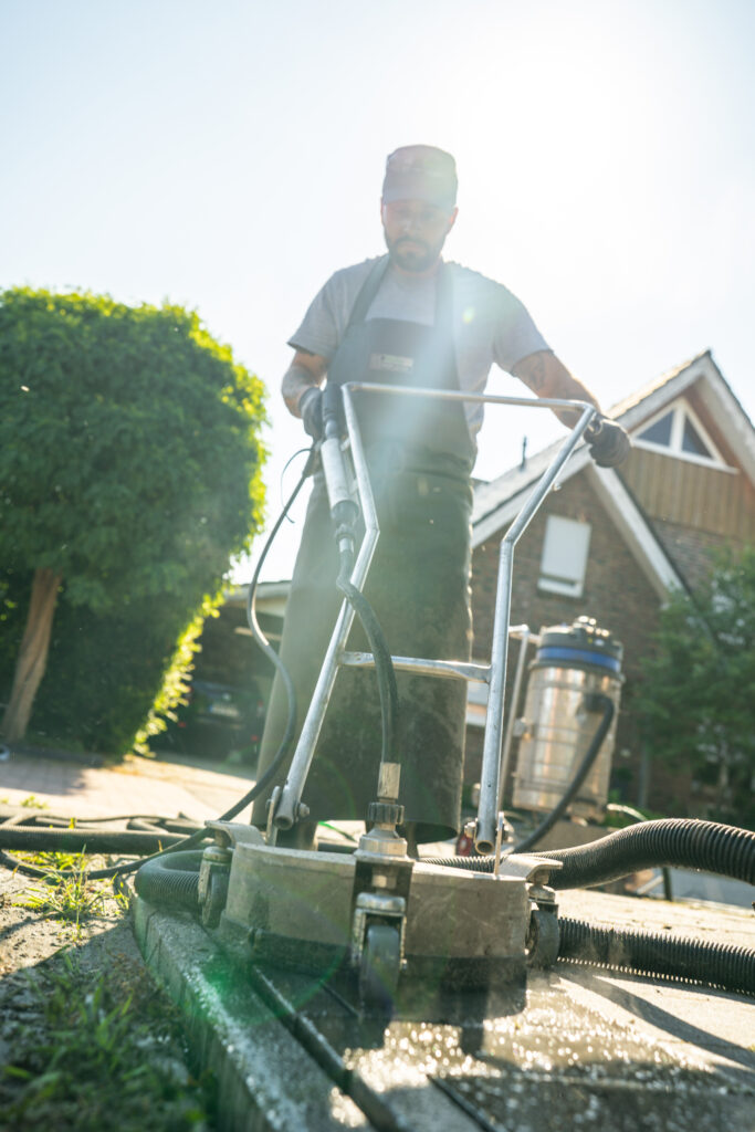 Die Steinpfleger sind auf die professionelle Reinigung und nachhaltige Pflege von Pflaster- und Betonflächen aller Art spezialisiert. Mit ihrer eigens produzierten Reinigungstechnik, reinigen sie die betreffenden Steine nicht nur,… sie versetzen sie in den Ursprungszustand zurück. Der Anspruch: Flächen wie neu verlegt bei durchschnittlich 75% Kosteneinsparung im Vergleich zu einer Neuverlegung.